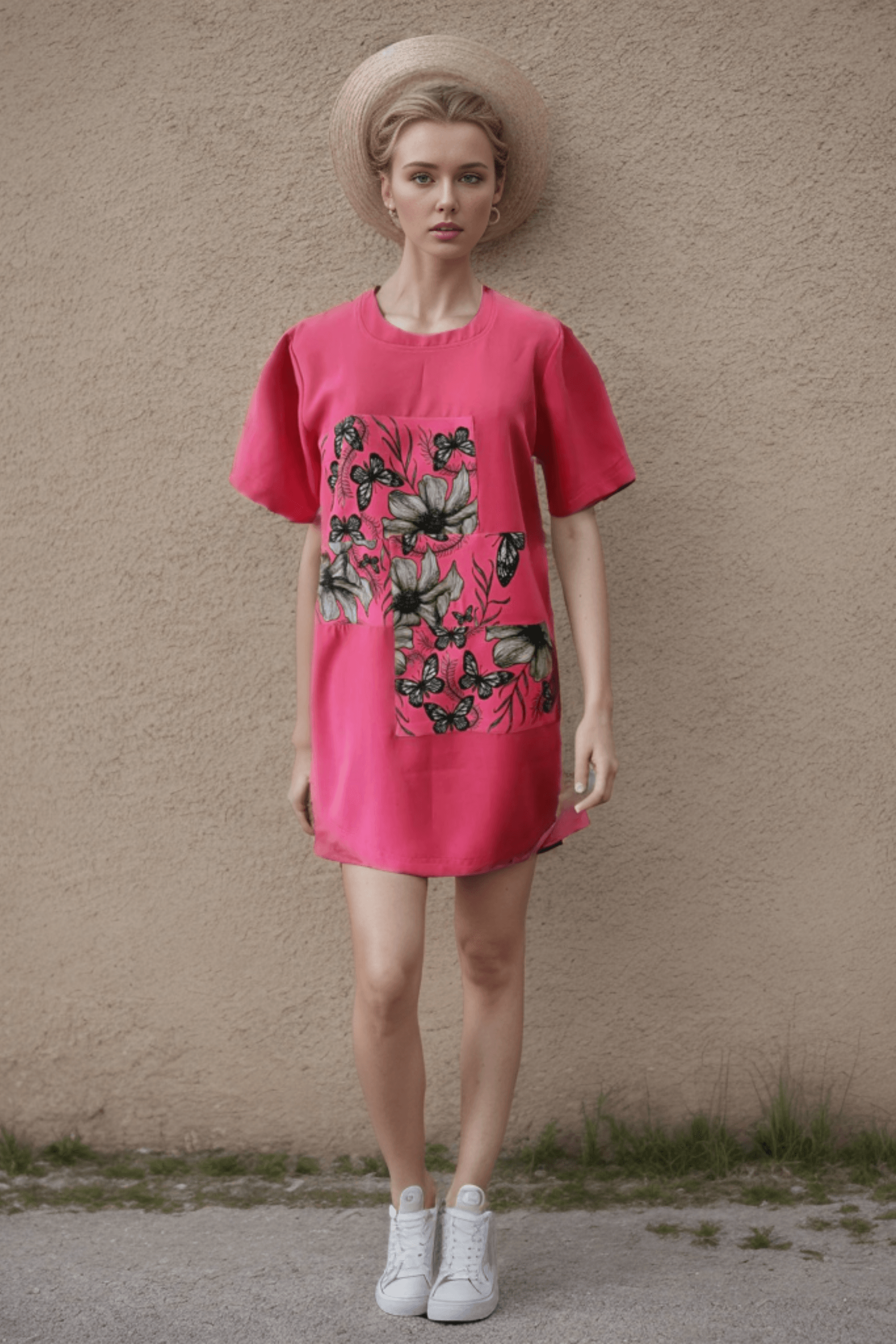 The Hot Pink Titlie T-Shirt Dress is a vibrant and playful wardrobe choice. The lively hot pink color adds a bold and energetic flair to this casual piece. This dress effortlessly combines comfort with a pop of eye-catching color, making it an ideal selection for fun and laid-back occasions. Whether for a casual day out or to infuse some lively charm into your style, the hot pink T-shirt dress is a statement piece that radiates confidence and positivity.