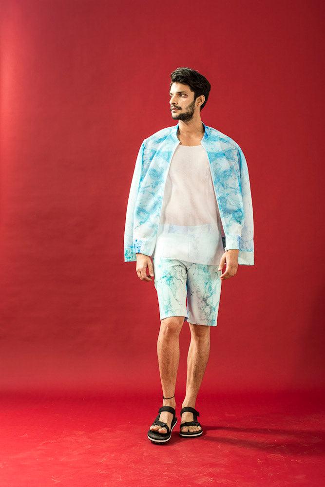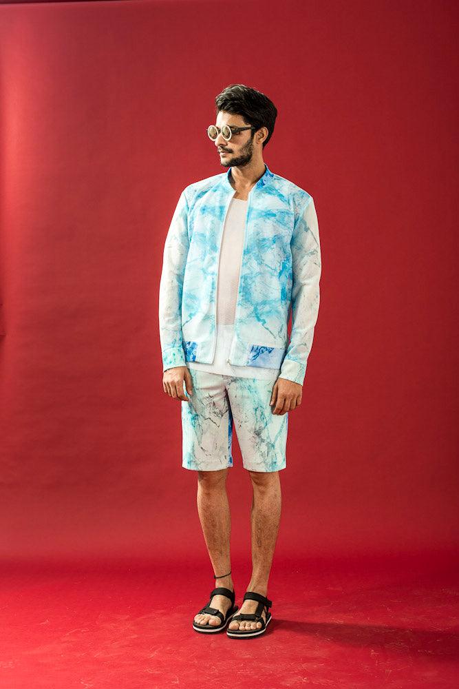 This stylish blue wave print men's bomber jacket is the perfect way to add a touch of personality to your wardrobe. Made from high-quality materials, this jacket is both comfortable and durable. It features a classic bomber jacket silhouette with a relaxed fit and a zipper closure. The all-over blue wave print is sure to turn heads.